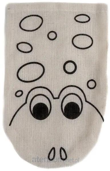 płócienna kukiełka ze wzorem do malowania markerami akrylowymi, wymiary 12 x 20 cm