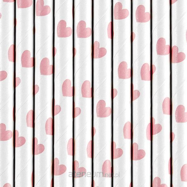 Słomki papierowe w kolorze białym z jasnoróżowymi sercami, długość około 19,5 centymetra.(1 op. / 10 szt.)