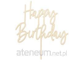 Drewniany topper Happy Birthday, wymiary ok. 15 x 16.5 cm.