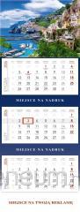 Kalendarz wiszący ścienny z kalendarium w układzie trójdzielnym, plecki i główka wykonane z jednego arkusza kartonu. Kalendarz składany do formatu A4.