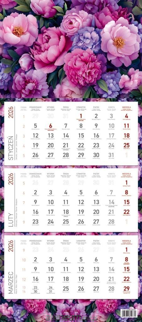 Kalendarz 2026 ścienny trójdzielny Hala...
