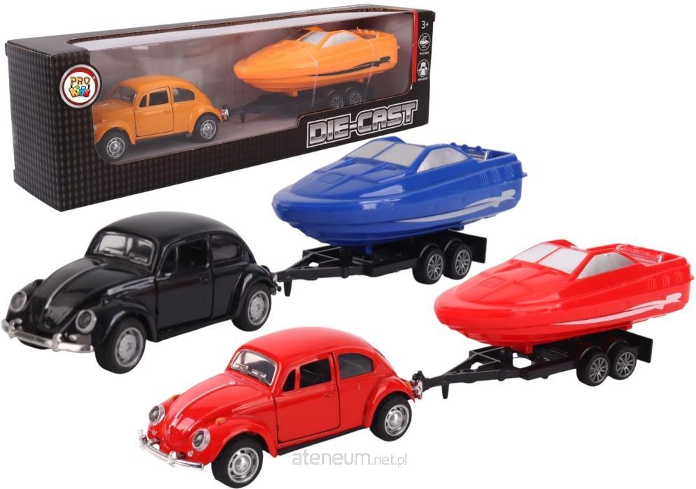 Model samochodu wykonano z solidnego metalu z dbałością o detale od charakterystycznych błotników po chromowane zderzaki. Otwierane drzwi umożliwiają zaglądanie do wnętrza i odgrywanie realistycznych scenek. Całość uzupełnia przyczepa z lekką, plastikową łodzią motorową w energetycznych kolorach (pomarańczowy, czerwony lub niebieski w zależności od wariantu), gotową do wodowania po każdej trasie.