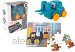 Pojazdy budowlane. Wywrotka i koparka + kask
