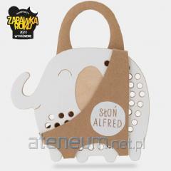 Słoń Alfred.Drewniana przeplatanka Montessori