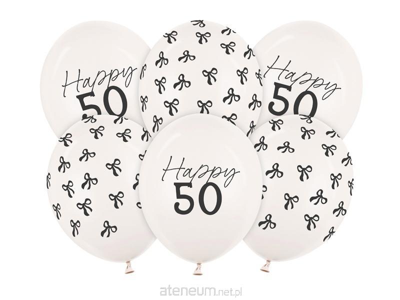 Balony Strong ''50'' w kolorze Pastel Off-white z nadrukiem, średnica ok. 30 cm.(1 op. / 6 szt.)