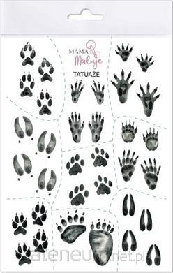 Na arkuszu znajdują się tropy: dzika, sarny, niedźwiedzia, wilka, lisa, rysia, wiewiórki, bobra i borsuka.
