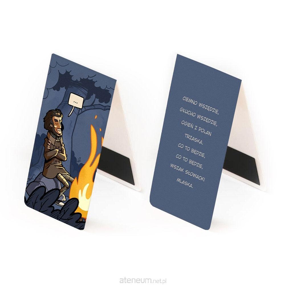 Ciemno wszędzie, głucho wszędzie, ogień z polan trzaska. Co to będzie, co to będzie, wszak Słowacki mlaska. Mickiewicz w karierze solo! Zaokrąglone rogi, papier kreda 350 g, folia zabezpieczająca błysk, folia magnetyczna na kawałku zakładki Wymiary: 50x200mm po rozłożeniu, 50x100 mm po złożeniu