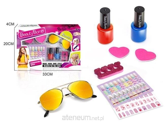 Odkryj świat mody i kreatywności z zestawem BeautyBombs! Ten kompleksowy zestaw do stylizacji to spełnienie marzeń każdej małej miłośniczki piękna. W eleganckim pudełku znajdziesz dwa żywe lakiery do paznokci - intensywny czerwony i wyrazisty niebieski - które pozwolą na stworzenie niezliczonych kombinacji. Dołączone brokatowe separatory do palców w kształcie serduszek i stópek zapewnią komfort podczas malowania, a dwa urocze, różowe gąbki w kształcie serca ułatwią precyzyjną aplikację. Całość uzupełnia bogaty arkusz z naklejkami na paznokcie, oferujący szeroki wybór wzorów - od geometrycznych zygzaków po słodkie serduszka, co pozwala na personalizację każdego manicure. Ale to nie wszystko! Zestaw zawiera również stylowe okulary przeciwsłoneczne z lustrzanymi soczewkami, dodające szyku każdej stylizacji. Wszystkie elementy zostały zaprojektowane z myślą o delikatnej skórze, gwarantując bezpieczną i radosną zabawę. Zestaw BeautyBombs to doskonały sposób na rozwijanie kreatywności i poczucia stylu u dzieci, zachęcając je do wyrażania siebie poprzez modę. Idealny na prezent!