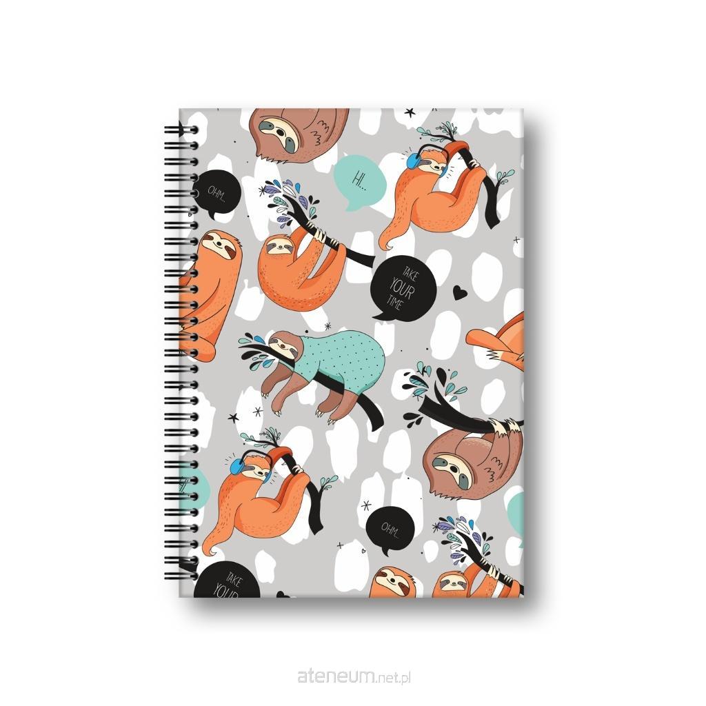 PENMATE Brulion A5 w twardej oprawie w spirali 80 kartek w kratkę T 0122 Leniwce folia mat nierysująca