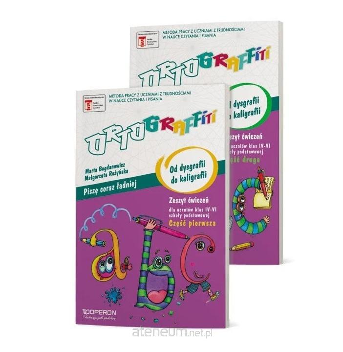 Seria Ortograffiti. Od dysgrafii do kaligrafii składa się z 2 zeszytów przeznaczonych do realizacji na cały rok szkolny. Zeszyty stanowią kompletną całość i wdrażają do poprawnego pisania pod względem graficznym (czytelność, estetyka) oraz poprawiają tempo pisania. Duży nacisk położono na rozwijanie funkcji wzrokowych, koordynacji wzrokowo-słuchowo-ruchowej, orientacji w schemacie ciała i przestrzeni oraz koncentracji uwagi. Każdy zeszyt został podzielony na 14 bloków tematycznych. Każdy z bloków utrwala wzór pisania grupy liter lub cyfr. Na końcu każdego zeszytu znajdują się prace domowe do samodzielnego wykonania przez ucznia utrwalające nowo poznane treści. Dodatkowo do każdego zeszytu ćwiczeń dołączono przydatne i ciekawe rady Kaligrafusa dla ucznia, który chce kształtnie pisać.