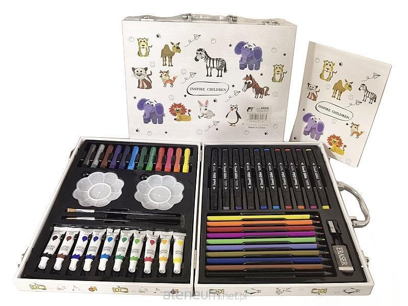 zestaw kreatywny szkolny, do rysowania i malowania w walizce w zestawie z kolorowanka - kredki, farby, flamastry, pastele; 30x23x5,5cm