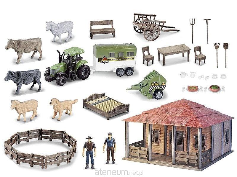 zestaw farma, traktor z przyczepą, budynek, rolnicy, zwierzęta z głosem, zagroda; 49x44x10cm, Box