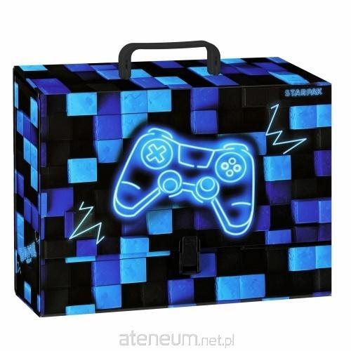 Teczka z rączką z kolekcji STARPAK z serii Gaming. Sztywna teczka wykonana z grubego, lakierowanego kartonu. Zamykana na plastikowy klips. Teczkę wyposażono w solidną rączkę. Teczka o szerokości grzbietu 9,5 cm. Idealnie sprawdzi się na zajęciach pozaszkolnych czy do przechowywania prac dziecka. Zapoznaj się również z innymi produktami z tej serii! Wymiary/waga: wymiary produktu (szer. x wys. x gł.)[cm]: 33x25x10, waga produktu [kg]: 0,52 kg. Produkt przeznaczony dla dzieci w wieku: 3+.