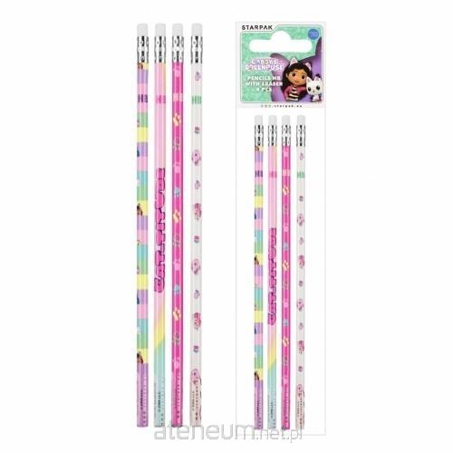 Ołówek nie łamie się podczas strugania, a gumka nie brudzi, ołówki to podstawowy produkt podczas nauki w szkole (rysowanie, matematyka, pisanie), łatwe w struganiu, nie łamią się, nie brudzą, uniwersalna twardość HB, każdy ołówek wyposażony w gumkę do mazania. Zestaw 4 ołówków z gumką z kolekcji STARPAK z licencją Gabby's Dollhouse!.Każdy ołówek zdobiony z kolorową grafiką z ulubionymi bohaterami. Wykonany z trwałego drewna, zapewnia komfort rysowania i pisania. Służy nie tylko do rysowania i szkicowania, ale jest również niezbędny podczas lekcji matematyki, do nauki pisania, do robienia notatek na marginesach książek lub zeszytów. Dlatego tak ważna jest jego jakość. Dzięki wysokiej jakości grafit nie sypie się, nie brudzi i nie kruszy. Twardość HB sprawia, że ołówki STARPAK są uniwersalne i mogą być wykorzystywane zarówno do pisania, jak tez rysowania. Zapoznaj się również z innymi produktami STARPAK z serii Gabby's! Zawartość opakowania: 4 szt. ołówków z gumką. Wykonane z odpornego, nie łamiącego się podczas strugania grafitu. Wymiary/waga: wymiary produktu (dł.)[cm]: 19 cm, wymiary opakowania (wys. x szer. x gł.)[cm]: 25x5x1, waga produktu bez opakowania 1szt.[kg]: 0,01 kg, waga produktu w opakowaniu [kg]: 0,02 kg. Produkt przeznaczony dla dzieci w wieku: 3+. Ołówki pakowane w folię z zawieszką.