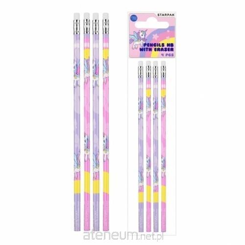 Ołówek nie łamie się podczas strugania, a gumka nie brudzi, ołówki to podstawowy produkt podczas nauki w szkole (rysowanie, matematyka, pisanie), łatwe w struganiu, nie łamią się, nie brudzą, uniwersalna twardość HB, każdy ołówek wyposażony w gumkę do mazania. Zestaw 4 ołówków z gumką z kolekcji STARPAK z grafiką w Jednorożce. Każdy ołówek zdobiony kolorową grafiką z ulubionymi bohaterami. Wykonany z trwałego drewna, zapewnia komfort rysowania i pisania. Służy nie tylko do rysowania i szkicowania, ale jest również niezbędny podczas lekcji matematyki, do nauki pisania, do robienia notatek na marginesach książek lub zeszytów. Dlatego tak ważna jest jego jakość. Dzięki wysokiej jakości grafit nie sypie się, nie brudzi i nie kruszy. Twardość HB sprawia, że ołówki STARPAK są uniwersalne i mogą być wykorzystywane zarówno do pisania, jak tez rysowania. Zapoznaj się również z innymi produktami STARPAK z serii Unicorn! Zawartość opakowania: 4 szt. ołówków z gumką. Wykonane z odpornego, nie łamiącego się podczas strugania grafitu. Wymiary/waga: wymiary produktu (dł.)[cm]: 19 cm, wymiary opakowania (wys. x szer. x gł.)[cm]: 25x5x1, waga produktu bez opakowania 1szt.[kg]: 0,01 kg, waga produktu w opakowaniu [kg]: 0,02 kg. Produkt przeznaczony dla dzieci w wieku: 3+. Ołówki pakowane w folię z zawieszką.