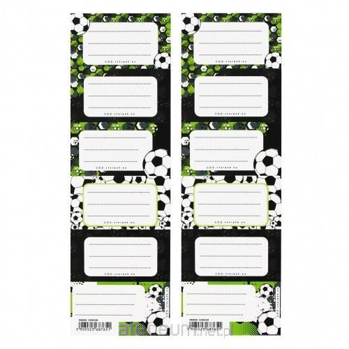 Naklejki na zeszyt Football, na listku znajduje się 6 naklejek, naklejki pozwalają na opisanie zeszytów szkolnych, dzięki czemu unikniemy pomyłek przy pakowaniu tornistra do szkoły. Zestaw kolorowych naklejek na zeszyty football z kolekcji STARPAK. Zapoznaj się również z innymi produktami STARPAK! Zawartość opakowania: 25 arkuszy po 6 szt. naklejek. Naklejki wykonane z papieru. Wymiary/waga: wymiary produktu (wys.x szer.)[cm]: 23x7,, waga produktu w opakowaniu [kg]: 0,07 kg. Nie odpowiednie dla dzieci poniżej 3 lat. Pakowane w folię.