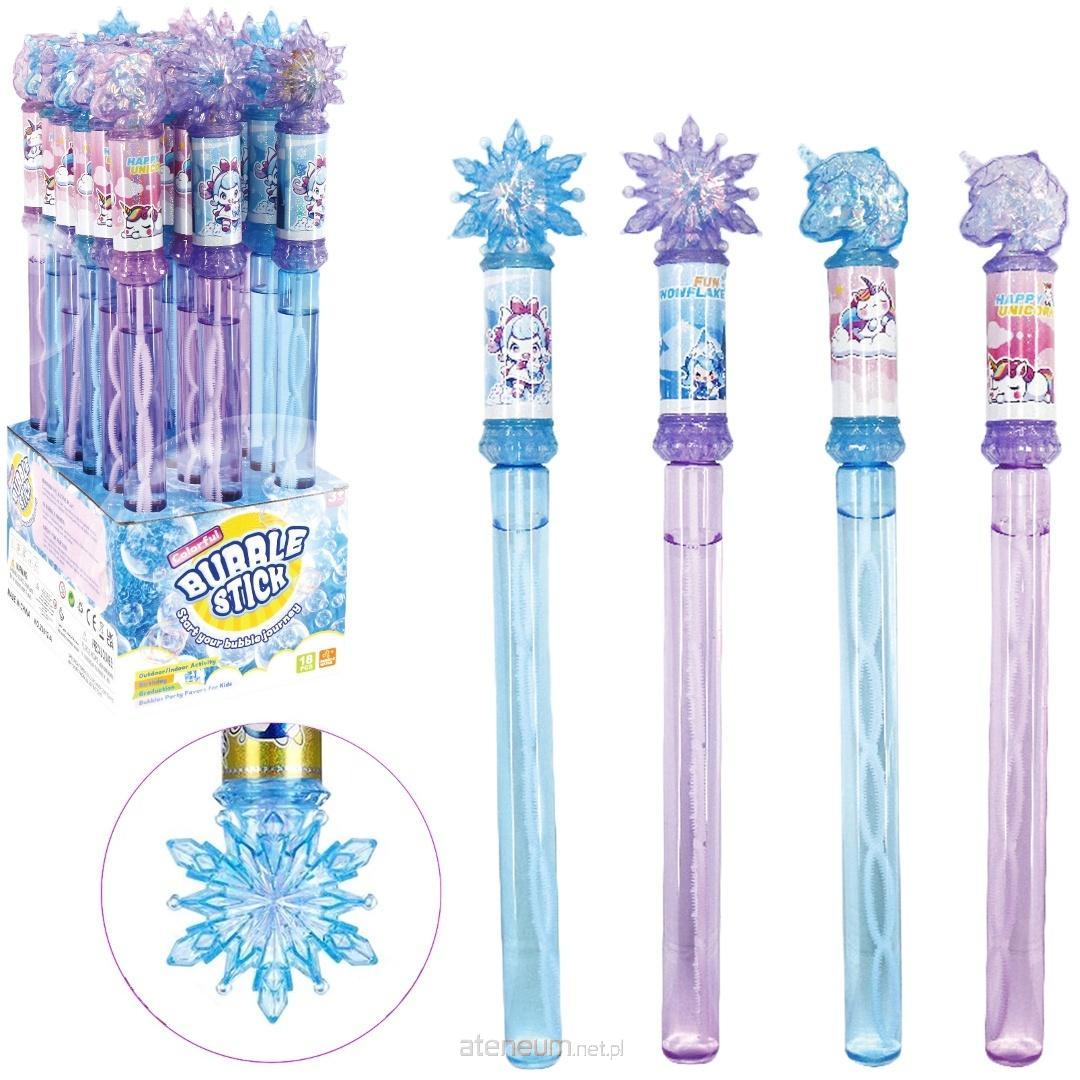 Magiczne Różdżki do Baniek Mydlanych "BUBBLE STICK" - Kraina Lodu i Baśniowe Bańki! Wkrocz do świata baśni i magii z naszymi uroczymi różdżkami do baniek mydlanych "BUBBLE STICK"! Te fantazyjne patyczki, zakończone motywami z Krainy Lodu lub baśniowymi jednorożcami, zapewnią mnóstwo radości i magicznych chwil podczas zabawy na świeżym powietrzu. Cechy produktu: Dwa Magiczne Motywy: Każda różdżka zakończona jest uroczystym motywem, idealnym dla fanów baśni: o Kryształowy Płatek Śniegu: Dla miłośników zimowych cudów i Krainy Lodu. Różdżka z błękitnym lub fioletowym uchwytem. o Jednorożec: Dla tych, którzy wierzą w magię i fantastyczne stworzenia. Różdżka z niebieskim lub fioletowym uchwytem. Kolorowe Tuby: Długie, przezroczyste tuby z płynem do baniek są dostępne w delikatnych, pastelowych kolorach (jasnoniebieski, fioletowy). Łatwe w Użyciu: Wystarczy zanurzyć końcówkę różdżki w płynie i delikatnie dmuchnąć, aby wyczarować mnóstwo pięknych baniek mydlanych. W zestawie Płyn do Baniek: Każda różdżka jest od razu gotowa do użycia, ponieważ zawiera specjalny płyn do baniek mydlanych. Rozwój Dziecka: Zabawa bańkami mydlanymi stymuluje rozwój koordynacji wzrokowo-ruchowej oraz zachęca do aktywności na świeżym powietrzu. Wygodny Display: Różdżki są sprzedawane w zbiorczym display'u (wg opakowania "24 PCS"), co ułatwia ich ekspozycję w sklepie. Wiek: Produkt jest przeznaczony dla dzieci w wieku 3 lat i starszych (zgodnie z oznaczeniem "3+" na opakowaniu zbiorczym). Wielkość: 41 cm Idealne na: Urodziny i imprezy tematyczne. Pikniki i wypady do parku. Zabawę w ogrodzie lub na balkonie. Drobny upominek, nagrodę czy gadżet na Dzień Dziecka. Podaruj swojemu dziecku magiczne chwile i mnóstwo radości z naszymi różdżkami do baniek mydlanych "BUBBLE STICK"!
