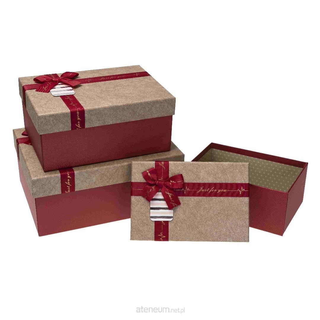 Pudełko prostokątne z kokardą 3szt czerwony ROZETTE