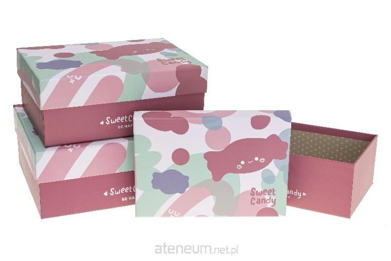 Pudełko prostokątne z kokardą 3szt różowy ROZETTE