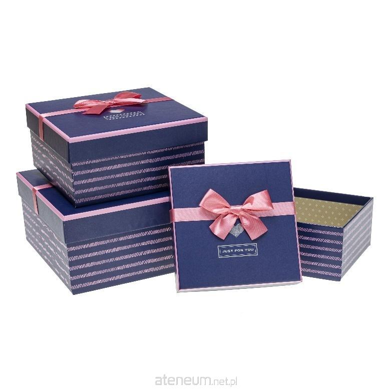 Pudełko kwadrat z kokardą 3szt granat ROZETTE