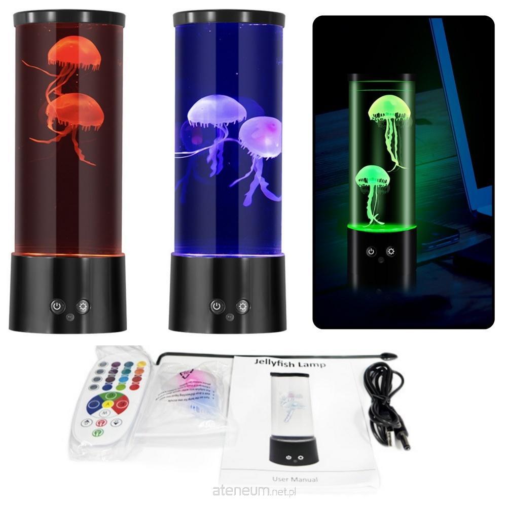 LAMPKA LEDOWA Z MEDUZAMI 22 x 8 CM Lampka LED z meduzą to nowoczesna dekoracja świetlna, która łączy relaksujące działanie kolorowego światła z hipnotyzującym ruchem sztucznych meduz, tworząc niepowtarzalną atmosferę w każdym pomieszczeniu. To idealny wybór do pokoju dziecięcego, sypialni, biura lub jako subtelne światło nocne. Urządzenie ma kompaktowe wymiary 22 x 8 cm i doskonale mieści się na biurku, stoliku nocnym czy półce. Transparentny zbiornik należy napełnić wodą (ok. 95% objętości), a następnie dodać kilka kropel płynu do naczyń, co umożliwia realistyczne unoszenie się meduz. Ich ruch odbywa się dzięki cichej pracy silniczka, tworząc odprężający efekt wizualny. Lampka emituje zmienne światło LED, które delikatnie rozświetla wnętrze i wprowadza przyjemny nastrój. Dzięki możliwości zasilania zarówno bateriami (3 x AAA), jak i przewodem USB (w zestawie), urządzenie jest praktyczne i mobilne. To wyjątkowy gadżet dekoracyjny, który nie tylko przyciąga wzrok, ale także działa uspokajająco. Doskonały na prezent, zarówno dla dzieci, jak i dorosłych ceniących niebanalne dodatki do wnętrz. SPECYFIKACJA: Wymiary lampy: 22 x 8 cm Wymiary opakowania: 23 x 9 x 8,5 cm Zasilanie: 3 x AAA (brak w zestawie) lub kabel USB (w zestawie) Podświetlenie: LED - zmieniające się kolory Sterowanie: Przycisk ON/OFF na podstawie Materiał: Tworzywo sztuczne + komponenty elektroniczne Elementy ozdobne: 2 sztuczne meduzy Użytkowanie: Do użytku wewnętrznego ZAWARTOŚĆ ZESTAWU: Lampka LED z meduzą 2 sztuczne meduzy Kabel USB Instrukcja obsługi (ENG)