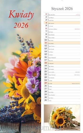 Kalendarz wieloplanszowy typu: pasek szeroki, 12 kart plus okładka pokryta lakierem UV. Miesiąc na stronie, spięty spiralą wraz z drucianą zawieszką. Format 15x48 cm. Kalendarium przejrzyste, zaznaczone święta i NIEDZIELE HANDLOWE. Kalendarz charakteryzuje się umiejętnym połączeniem estetyki kalendarium wraz z jego funkcjonalnością.