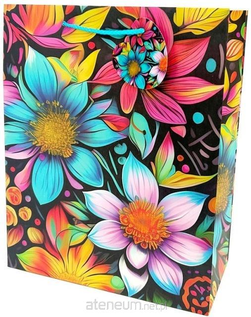 Torebka ozdobna matowa 18x23x10cm Kwiaty