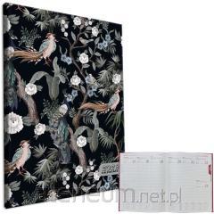 W środku miejsce na notatki, roczny planer, oznaczone wybrane święta międzynarodowe, mini kalendarium, międzynarodowe numery telefonów, strefy czasowe,