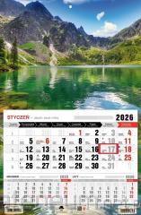 KALENDARZ TRÓJDZIELNY 2026 WYMIAR CAŁKOWITY KALENDARZA: 32 x 85,5cm GŁÓWKA KALENDARZA: Zdjęcie uszlachetniane folią błysk, z efektem wypukłości. KALENDARIUM: wym. 28,5 x 14 cm, trójjęzyczne (PL, GB, D), z numeracją tygodni i imieninami jest przytrzymywane przez kartonowe wypustki, które zapobiegają jego odstawaniu od plecków kalendarza. WYKOŃCZENIE: kartonowa zawieszka, pasek z czerwonym przesuwanym okienkiem, miejsce na notatki. WYMIAR ZDJĘCIA 32 x 22 cm ZDJĘCIE Z EFEKTEM WYPUKŁOŚCI: uszlachetnione folią błysk.