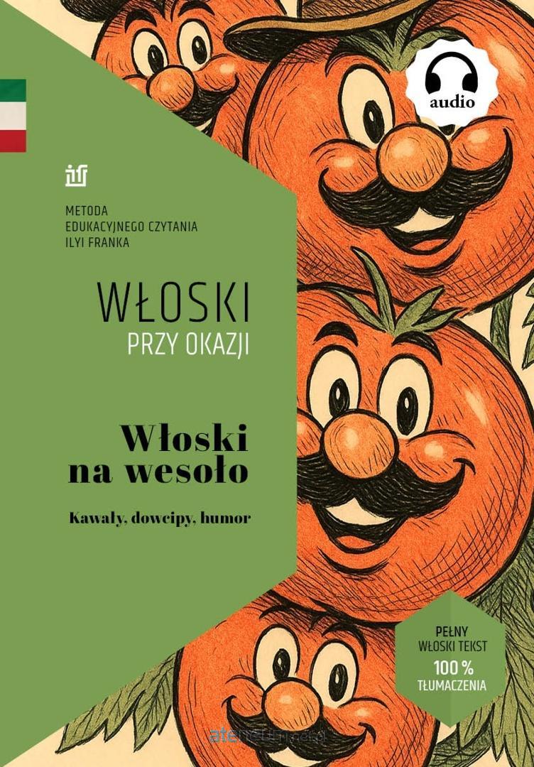 Książka dwujęzyczna ** WŁOSKI + POLSKI + AUDIOBOOK **. ** CZYTASZ ** ROZUMIESZ ** ODSŁUCHUJESZ ** UCZYSZ SIĘ JĘZYKA ** Proponujemy czytanie ciekawych książek **W JĘZYKU ORYGINALNYM** z wplecionym polskim tłumaczeniem. Cała treść jest podzielona na akapity. Najpierw czytamy akapit **Z TŁUMACZENIEM**, następnie czytamy tę samą treść bez tłumaczenia, czyli "płyniemy bez asekuracji". Dodatkowo książka posiada QR code do **AUDIOBOOK**, żeby ćwiczyć wymowę. Mózg łączy obcojęzyczne i polskie znaczenia w jedną całość, a czytelnik **UCZY SIĘ JĘZYKA Z PRZYJEMNOŚCIĄ I PRZY OKAZJI**. Z serii mogą korzystać osoby zarówno początkujące i średniozaawansowane (czytając najpierw część z tłumaczeniem, a potem bez tłumaczenia), jak i osoby zaawansowane (czytając w odwrotnej kolejności albo tylko oryginalną treść). ** PEŁNY ORYGINALNY TEKST ** 100 % POLSKIEGO TŁUMACZENIA ** AUDIOBOOK ** Zestaw śmiesznych anegdot, kawałów i dowcipów, którymi się posługują Włosi. Czasami krępujące, ale prawdziwe i śmieszne :) Czy nie chciałbyś zaskoczyć swojego rozmówcę z Włoch kawałem z Jego stron? Pracujemy starannie nad tym, żeby odkrywać dla Ciebie urok oryginalnego języka, zawarty w każdej książce. "