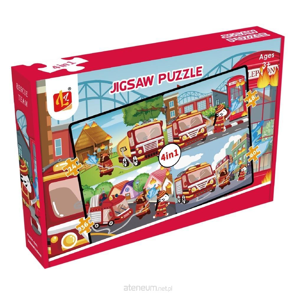Puzzle 4w1 Straż pożarna Wymiary obrazka po ułożeniu: 34 x 24 cm (w zestawie 4 obrazki - 24 elem., 36 elem., 48 elem., 60 elem.) Wymiary opakowania: 32 x 5.5 x 22 cm Wiek 3+