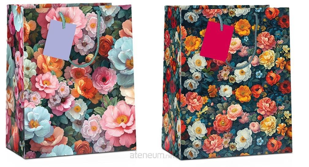 Torebka ozdobna matowa 26x32x12cm Kwiaty