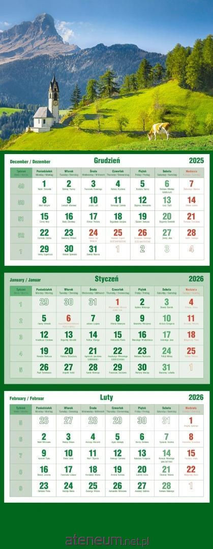 Główka pełnokolorowa, okienko przesuwane, nazwy miesięcy i tygodni w wersjach językowych, miejsce na nadruk reklamowy.