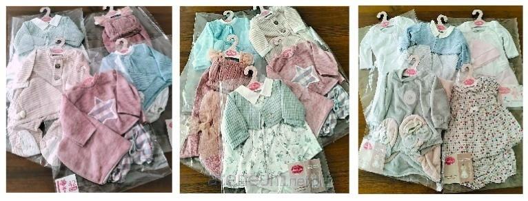 Pakiet ubranek dla lalki 42 cm 5 szt. Antonio Juan 91042 Zestaw strojów dla lalek - bobasów o wysokości 42 cm marki Antonio Juan zawiera 5 sztuk losowo wybranych ubranek (mix). Staramy się zachować różnorodność kolorystyki i fasonów. Mogą to być np.: sukienka, sukienka z bolerkiem lub krótkimi spodenkami, bluza lub body z półśpiochami lub krótkimi spodenkami, body lub body z czapeczką, piżamka, kostium dla lalki. Stylowe ubranka, szyte ręcznie z wysokiej jakości tkanin, są umieszczone na tekturowych wieszaczkach z logo marki Antonio Juan i zapakowane w foliowe opakowania.