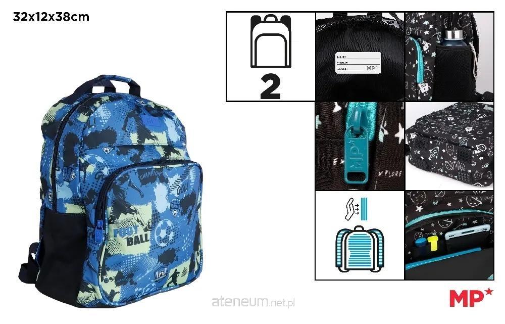 Plecak dwukomorowy Football niebieski 32x12x38cm