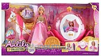 karoca z lalką 29cm i chodzącym koniem, na baterie, z muzyką; 64x34,5x18,5cm, W/B