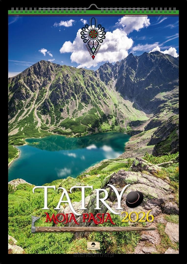 KALENDARZ 2026 A2 ŚCIENNY JEDNOSTRONNY 12 KART + 2 OKŁADKI, PAPIER KREDOWY, OPRAWA Z ZAWIESZKĄ, ,DUŻE CZYTELNE KALENDARIA W JĘZYKU PL,EN,DE,UA. Tematyka Tatry, góry, krajobrazy.