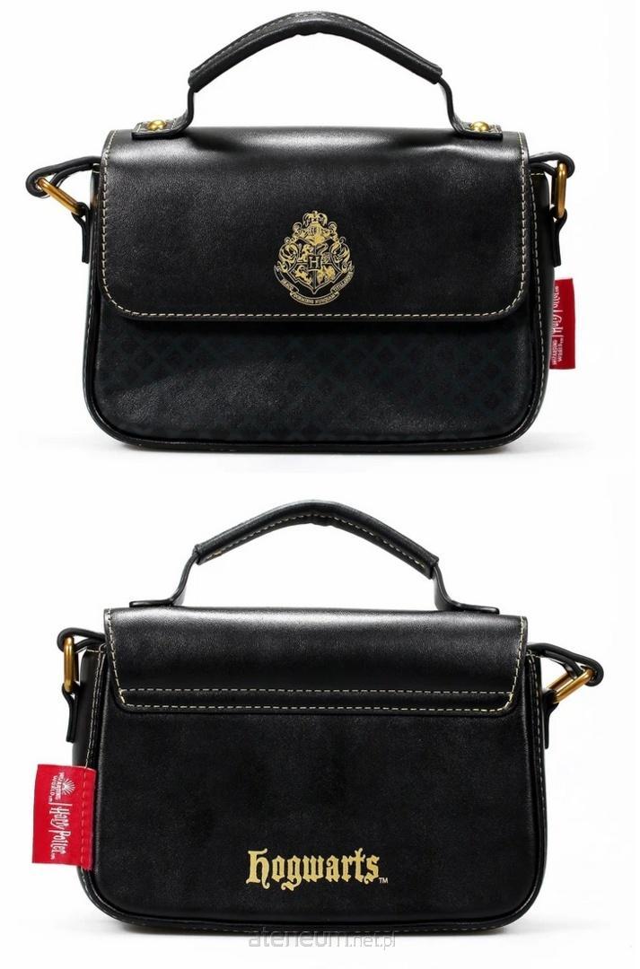 Torebka na ramię z motywem Hogwartu od Half Moon Bay to stylowy dodatek, który łączy miłość do świata magii z elegancją. Wykonana jest z czarnego materiału imitującego skórę, zdobi ją herb Hogwartu w subtelnej złotej tonacji, a kontrastujący uchwyt w odcieniu złota podkreśla szlachetny charakter całego projektu. Wygodny pasek na ramię i kompaktowy rozmiar sprawiają, że torebka idealnie sprawdzi się jako praktyczne, a jednocześnie pełne magii akcesorium na co dzień. Dzięki wymiarom: 17 cm wysokości, 19 cm szerokości i 7 cm głębokości jest przestrzeń na niezbędne przedmioty, a jednocześnie torebka zachowuje zgrabną formę. Produkt oficjalnie licencjonowany przez markę Half Moon Bay. Doskonale wpisuje się w styl fanów literatury z uniwersum Harrego Pottera, co czyni torebkę idealnym prezentem dla każdego Potterheada.