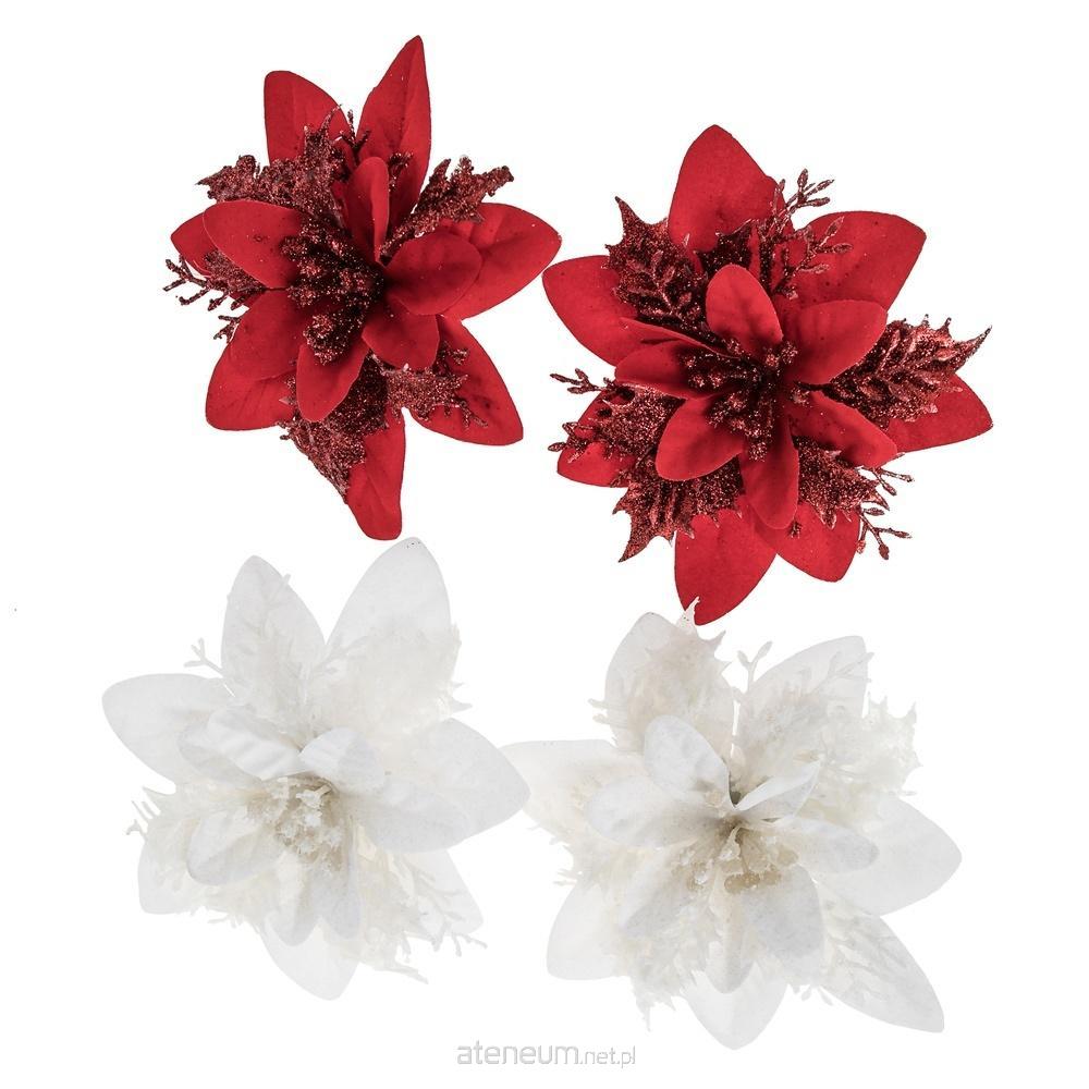 Kwiaty poinsecji białe, czerwone 14cm 4szt