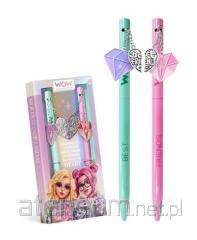 Długopis ścieralny z końcówką kulkową 0,5 mm. Do stosowania zarówno przez najmłodszych jak i starszych użytkowników. Zapisany tekst można w łatwy sposób usunąć poprzez pocieranie silikonową gumką. Możliwość odzyskania tekstu przez schłodzenie. Obudowa w modnych wzorach. Antypoślizgowy uchwyt zwiększający komfort pisania. Zestaw 5 długopisów w cenie 3. Podane w woreczku foliowym.