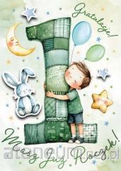 Karnet formatu 13cm na 21cm ze złoceniami lub srebrzeniami.