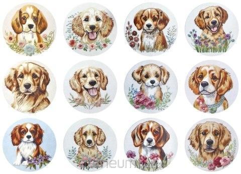Naklejki papierowe na taśmie 8 wzorów psy O25mm 500szt.