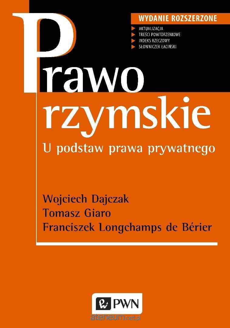 Prawo rzymskie jest fundamentem naszej kultury prawnej, bez jego zrozumienia nie jest możliwe funkcjonowanie w dzisiejszym systemie prawnym, a więc i w naszej rzeczywistości. Autorzy ukazują je w kontekście rozwoju europejskiego prawa prywatnego. Omawiają m.in. wartości i zasady prawa prywatnego na przykładzie unormowań rzymskich oraz tradycji romanistycznej od średniowiecza po współczesność, metodę jurystów rzymskich jako podstawę zrozumienia nowoczesnego dyskursu prawniczego, instytucje i modele dogmatyczne czerpiące inspiracje z prawa rzymskiego. Najważniejszym wyróżnikiem tego podręcznika jest przesunięcie punktu ciężkości z uczenia prawa rzymskiego jako elementu historii antycznej ku spojrzeniu na nie jako na doświadczenie dyskusji o problemach prawa prywatnego - dyskusji toczonej w czasach antycznych, a następnie, w oparciu o rzymskie teksty prawne, od późnego średniowiecza po kodyfikacje cywilne. W edukacji prawniczej nie chodzi bowiem tylko o przekazanie pewnej wiedzy, ale przede wszystkim o rozwijanie kompetencji niezbędnych do udziału w dyskusji o ważnych problemach prawa. To jeden z najistotniejszych czynników pozwalających na wykształcenie dobrego prawnika.