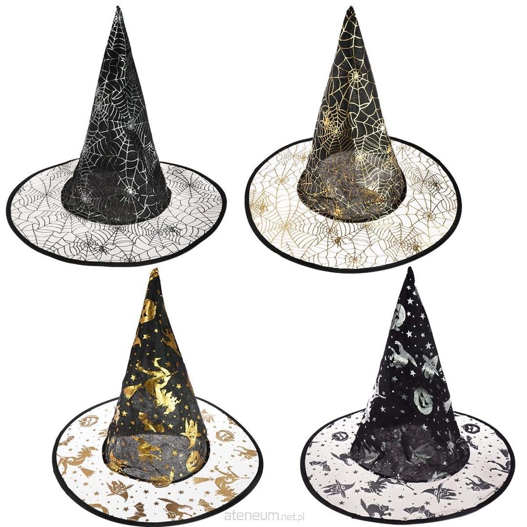 Stylowy kapelusz czarownicy z szerokim, transparentnym rondem i dekoracyjnym nadrukiem to idealny dodatek do halloweenowych przebieranek. Kapelusz wykonany jest z lekkiego, lekko usztywnianego materiału na rondzie, dzięki czemu zachowuje kształt i dobrze prezentuje się na głowie.