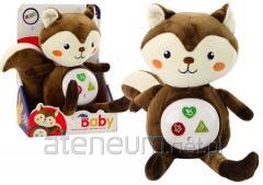 Słodziak na kółkach bawi dźwiękiem i światełkami! Jeżyk ze sznureczkiem do prowadzenia rączką, posiada na boku dwa aktywne przyciski, w kształcie grzybka i jabłuszka, które po naciśnięciu świecą, a także aktywują melodie oraz edukacyjne piosenki. Na drugim boku jeżyka znajduje się motylek, który podczas przesuwania zabawnie terkocze. Zwierzak wyposażony został w praktyczny przełącznik ON/OFF, umożliwiający wyłączenie jeżyka po zakończonej zabawie.
