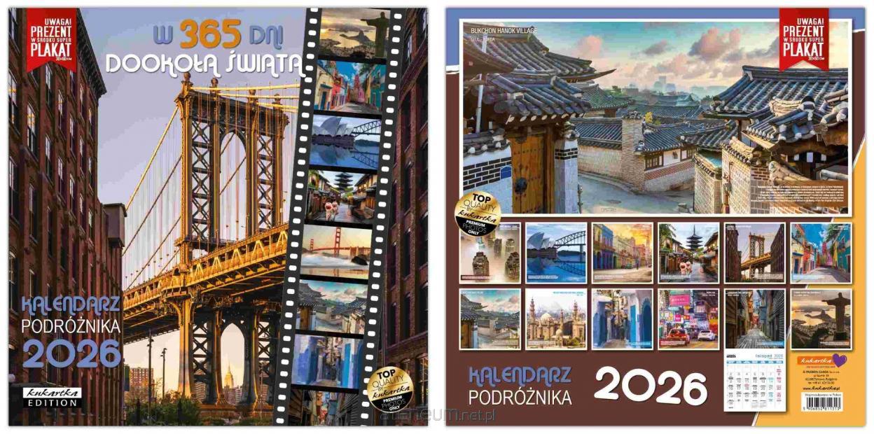 Kwadratowy kalendarz ścienny na rok 2026 z serii "365 dni dookoła świata".