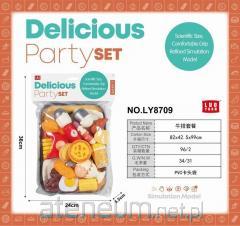 Imitacje jedzenia: jajko, kiełbaski, pierożki, kluski, babeczki (lub podobne)