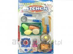 Akcesoria: 33 elementy (sztućce, garnki, talerzyki, jedzenie, butelki, kosz na odpady, pojemniki)