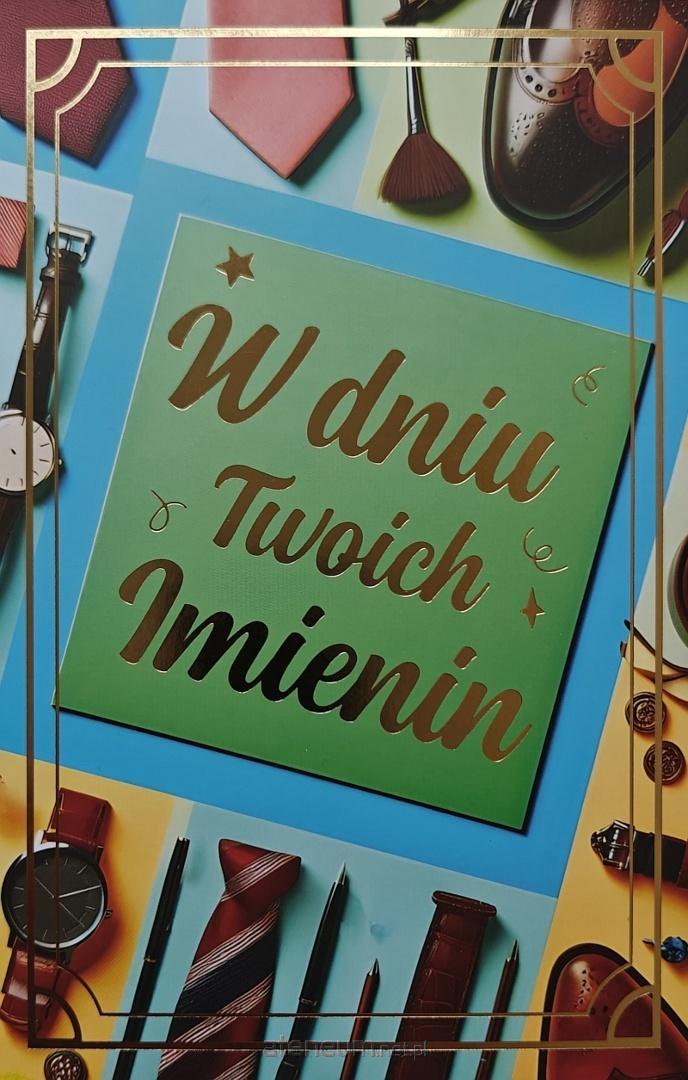 Karnet 2k. Klasyczny karnet na imieniny dla mężczyzny. Uszlachetniony wysokiej jakości hotstampingiem ( złocenie ). Karnet zawiera życzenia.
