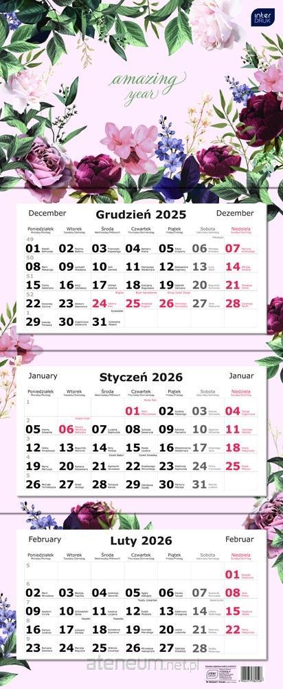 Kalendarz 2026 ścienny trójdzielny Kwiaty
